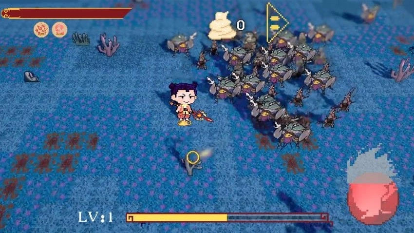 2、利用各种各样的法宝武器击退不断来袭的虾兵蟹将浪潮,注意自己的走位,遇到强大的boss时请冷静的击败它吧!