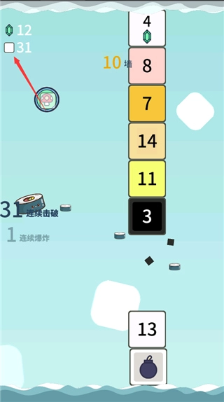 6、上方还可以查看自己击破的砖块以及获得的钻石!