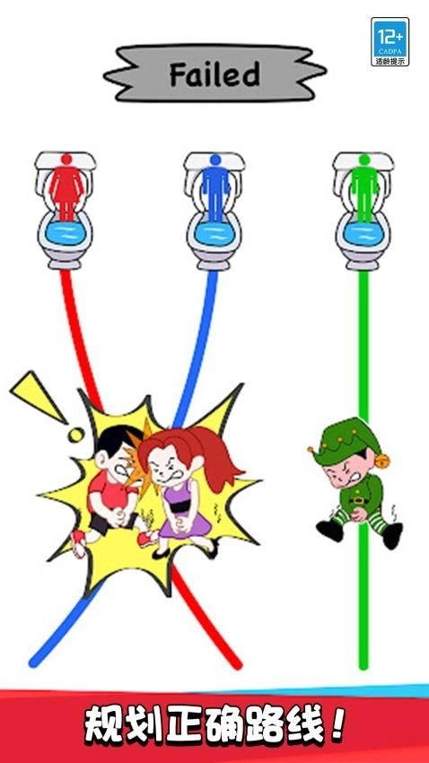 1.游戏呈现了一个简单的游戏场景。上厕所成功与否,取决于你的力量。