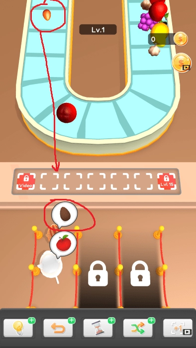 2、前面的小猫走了之后才能为下一个选水果,后面关卡水果多了就会点错。