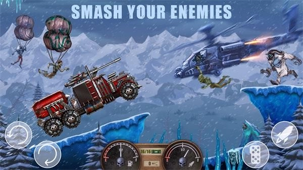 驾驶全副武装的赛车来横冲直撞,能撞击并消灭很多的僵尸,从而体验影响的屠戮快感。
