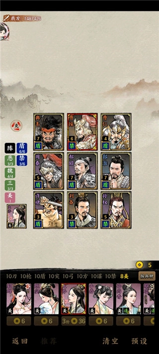 沿用前代《字走三国》的九宫格战斗形式,组合兵种、羁绊、站位、地形和随机事件等元素,让每一场战斗都有丰富的策略组合。