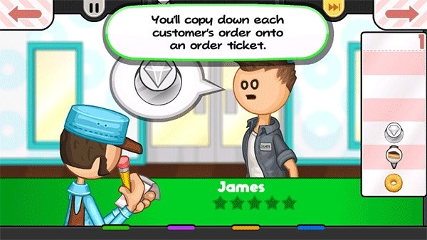 1、首先玩家要为顾客进行点餐操作,在顾客选定了自己想吃的甜甜圈种类后,就能够着手制作对应的甜甜圈了。