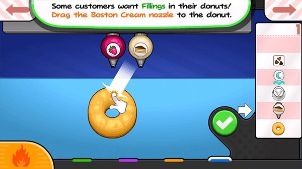 3.十分轻松解压加入其中进行游戏模拟制作,选择不同的工具烹饪制作甜甜圈