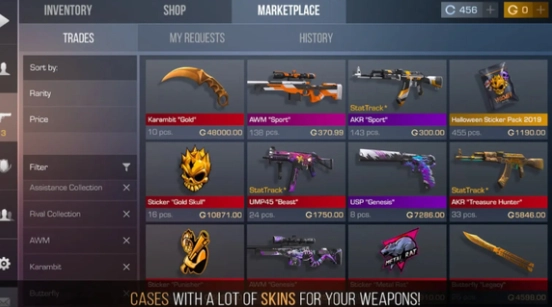 3、直接商城购买。在商城中会有其它玩家上架自己开出来的近战武器,我们就可以直接进行购买。这一方法简单粗暴,且没有任何中间手续,是获得额外刀最直接的方法。
