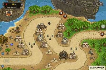 攻略:本关开始英雄可以上场,大家可以把英雄练满级再打,会比较给力。我上场的是7级战士,也够用。英雄开始时摆上方路口,初始造塔上方摆一个炸弹塔,中间和右面各放一个魔法塔,其余兵营和弓箭塔。右侧第一波用增援守一下,有钱后招2个海盗堵右边。优先升级中上的炸弹塔到顶级,然后升级中间弓箭塔到顶级,升级鹰眼增加射程。然后升级右上的弓箭塔以及右边的弓箭塔,魔法塔。本关前4波敌人都较易应付,第5,6波压力较大,特别是第6波有多个死灵召唤师,注意及时升级各个塔楼,重点升级弓箭塔配合连射技能,钱是比较充足的。本关英雄需要来回调动,左中右哪条防线吃紧就去哪边,注意步兵被火炮炸死后要及时使用增援,特别是右侧的钻地怪,很容易漏过。
