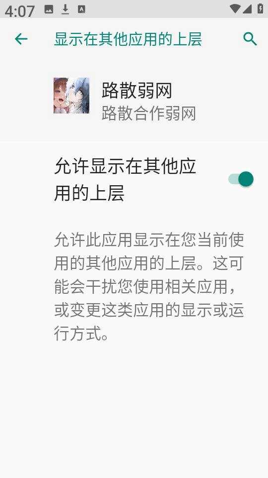 1、首先在本站安装路散弱网应用,打开后,首次使用需要开启悬浮窗权限。