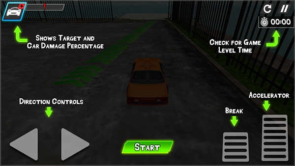 游戏采用关卡闯关的形式,每一关都配备了别具一格的机关与挑战。你得灵活运用这些机关,尽可能让车辆的损坏程度达到最高。