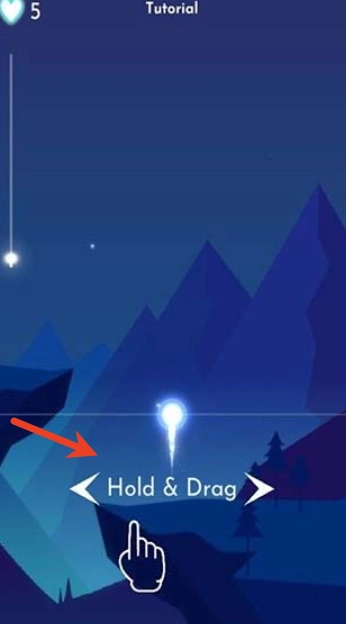 1、玩家只需根据操作指示,长按屏幕并滑动,就可控制小球进行跳跃。