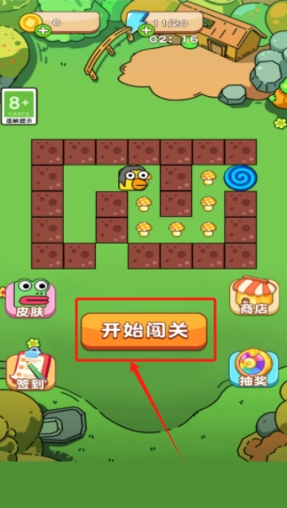 1、启动游戏后,点击“开始闯关”按钮进入游戏界面。
