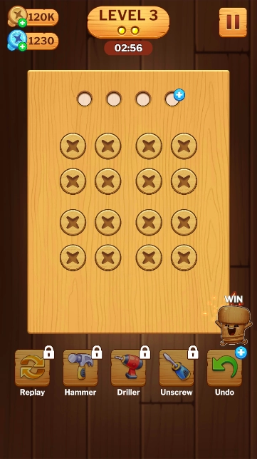 螺丝难题(Screw Puzzle)是一款极具挑战性的解谜闯关游戏,游戏内包含各式各样的木质螺母、螺栓与拼图。玩家可通过拧螺丝的方式开启挑战,只需依照要求,按照特定顺序取下螺丝与拼图块,即可顺利完成关卡。