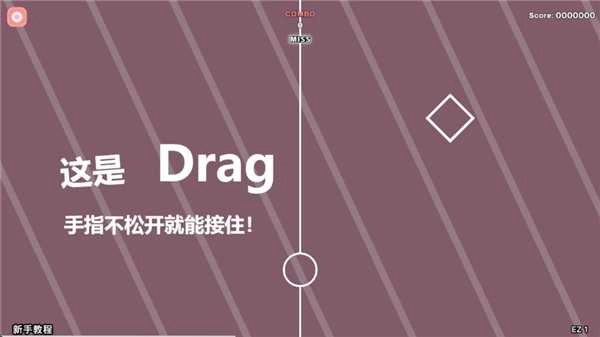 6、在进行hold操作时,上方出现的drag音符将自动被识别为成功接住。