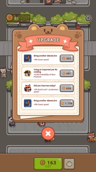 1、你要经营一条早餐街,聘请萌萌的小动物来帮你制作各式各样的早餐,以满足顾客们的不同需求。