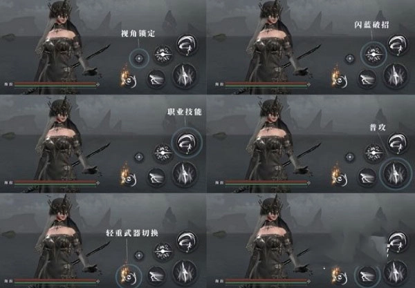 右边第三个是普通攻击,每个角色的普攻都分为几段,长按不放的话可以释放蓄力普攻,右边第二排第一个是锁定键,因为玩家在和怪物战斗的过程中,经常会用到走位和闪避,因此有什么可能摸不着方向,而大家点击一下锁定键,就可以直接将视线转移到当前最近的怪物身上,第二排第二个是看破,玩家们在和怪物战斗时,会经常遭到怪物的技能攻击,而有一些技能攻击在快要命中敌人时,是会出现看破图标的,当出现了这个图标后,大家点击看破可以直接闪掉这次伤害,同时怪物还会进入几秒的停滞期,大家可以趁机多刺几刀来,第二排第三个是职业战技,每个职业的战技都是不一样的,大家可以一个个尝试一下。