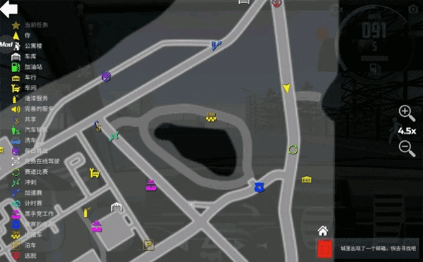 这关有点难,所以把握好时机,完成之后右转直行来到湖边,会看到一个带有星号的“在郊区”任务,那个就是最后一个任务了,不仅可以获得大额金币,还解锁了很多车辆。