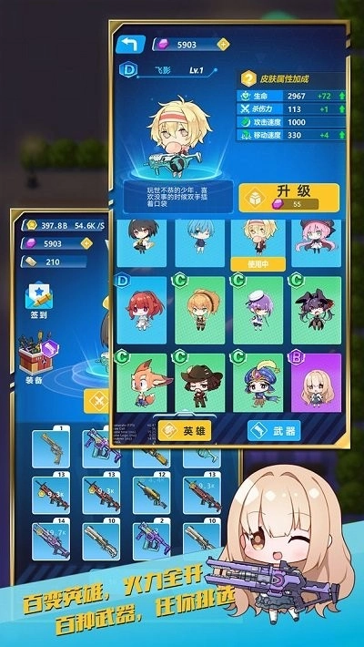 解锁全新的武器,不同角色搭配专属武器能发挥出最强的威力。