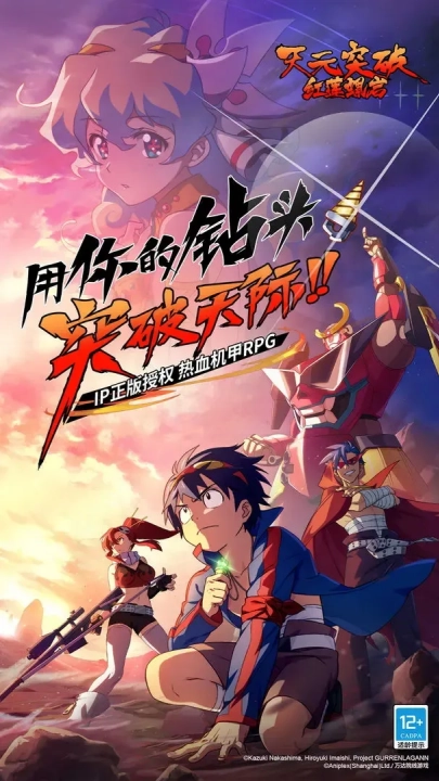 天元突破红莲螺岩首款游戏正式亮相!!由TRIGGER全程监修,高度还原经典剧情,邀你再续钻头的浪漫传奇。与红莲团并肩,向着天空进发,冲破宇宙的界限吧!