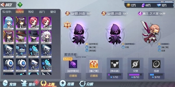 第五栏为分解界面,可将多余宠物进行分解,分解后宠物消失,会返还部分培养道具,且获得觉醒石