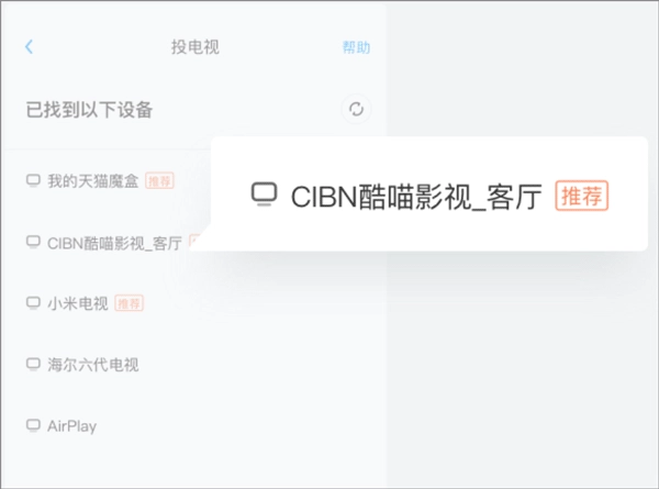 1、投屏到电视机上时用户首先需要在电视机上安装酷喵影视