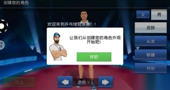 1.首先你需要创建一个角色,为其搭配你心仪的外观,随后就能参与乒乓球比赛了。