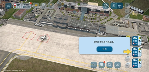 2、在机场中点击右边的卡牌栏可以与飞机互动。