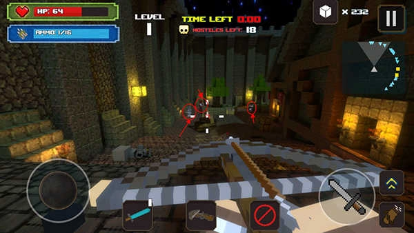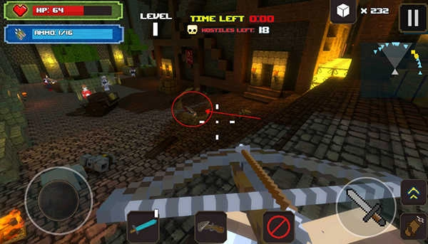 在游戏中,每个关卡内都有多种多样的武器可以拾取,通过获得更多更优质更强大的武器,击败所有敌人。游戏采用方块形象制作出的人物,让玩家在游戏中想尽办法来击杀敌人。每个地方都有着不同的敌人,拿着不同的武器来进行防守。