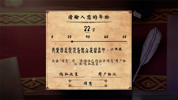 1.打开游戏后,先输入年龄,接着勾选隐私政策和用户协议,然后点击同意按钮进入游戏。