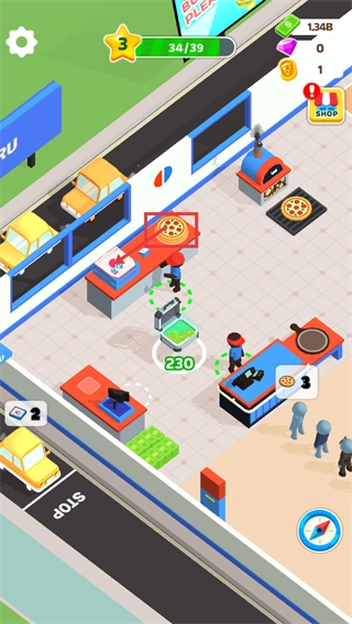 1、获取处于【MAX】状态的披萨,同时收取场景内的【230】资源,以此保障店铺订单的供应需求与资金储备。