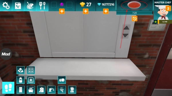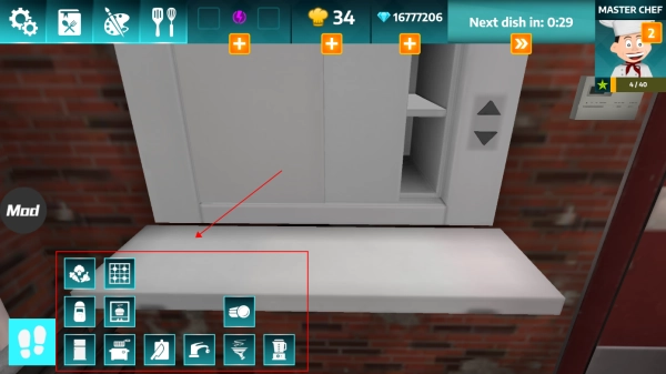 4、根据图示中的图标,前往厨房的不同区域,进行美食烹饪。