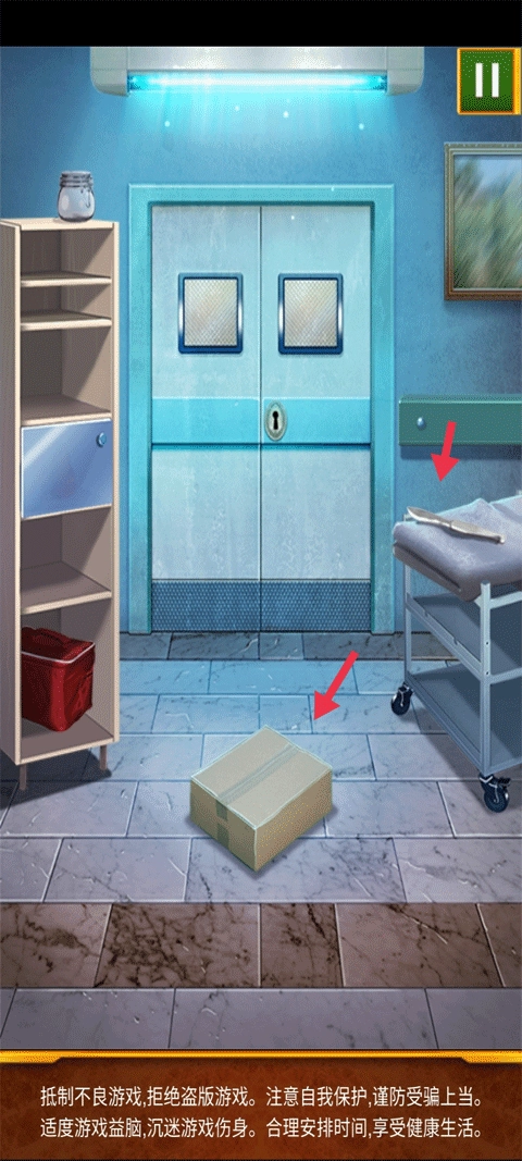 将你的手机向右倾斜,就会掉出了一个盒子,用小刀将盒子划破,获得钥匙打开门。