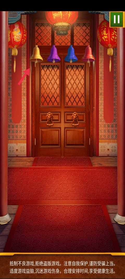 根据提示用剪刀将红丝带剪断即可开门。