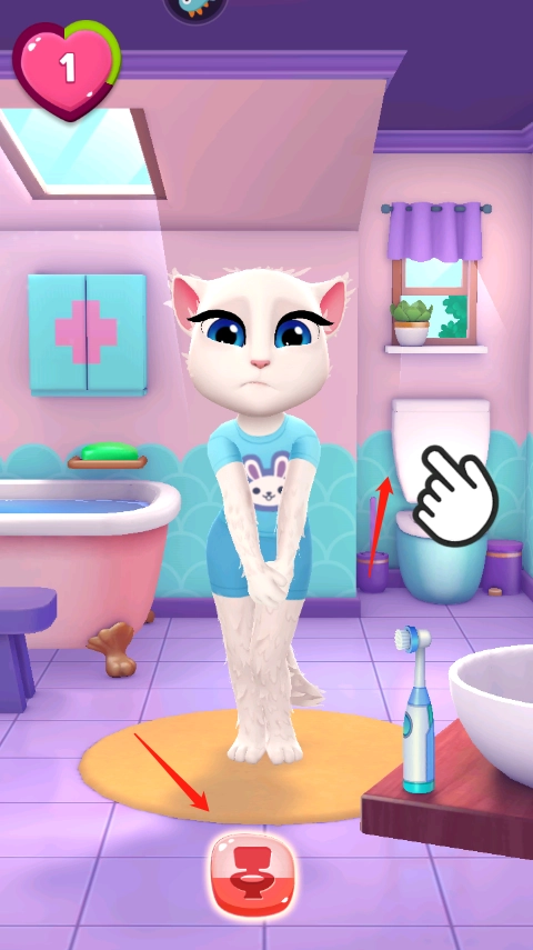 4、上完厕所后小猫美女的心情就会变好了,可以看到左上方得到了一颗心心啦。
