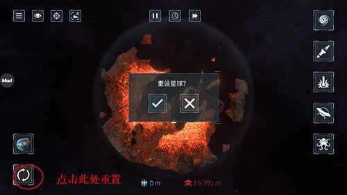 3、点击重置行星;
