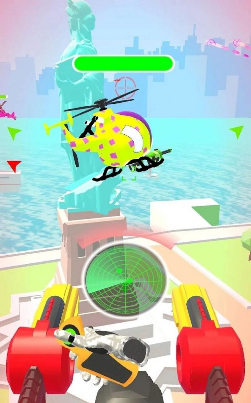 在《直升机战斗场》里驾驶直升机翱翔天际,尽情享受自由飞行的同时,得时刻留意敌人的动向。一旦遭遇敌军,务必果断射击——击落的敌人越多,能拿到的奖励就越丰厚,好好沉浸在这段充满乐趣的游戏时光里吧!射击时别慌乱,就算被敌人突袭,也可以通过加速飞行转移到安全区域,先保护好自己再说。