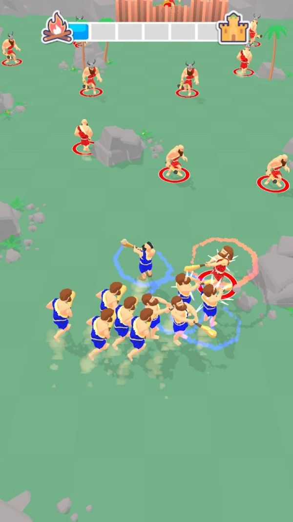 1.石器时代战争这款游戏需要玩家收集资源,准备好你的部落成员,与敌人作战。