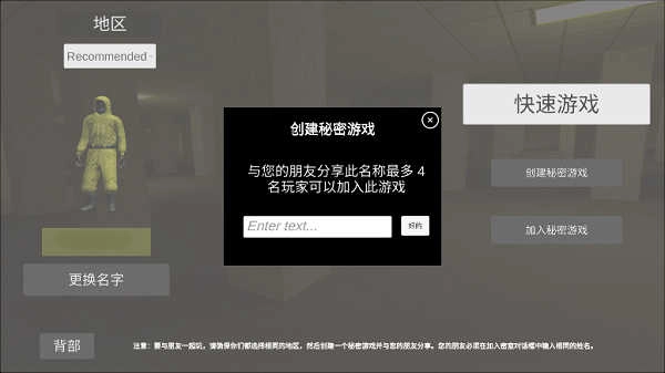 8、选择相同地图、地区后,输入相同的房间名称。