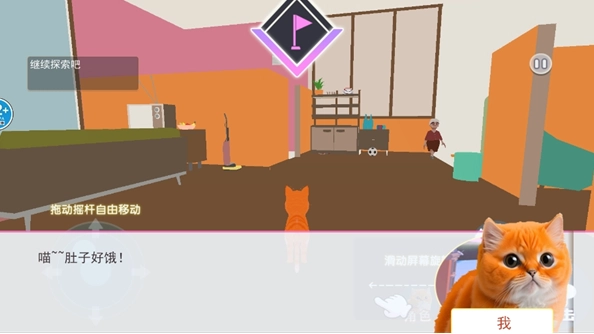 3、在闯关的过程中玩家还可以使用拖动摇杆自由移动,滑动屏幕旋转视角,寻找食物完成给出的目标任务获得胜利。