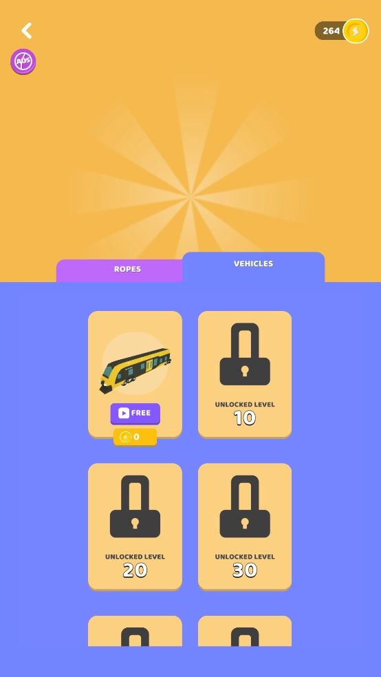 4、玩家后续还可以使用金币解锁新的交通工具和绳索
