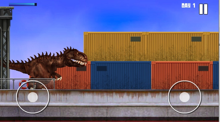 游戏的核心玩法是操控霸王龙展开破坏与吞噬。你得顺着道路行进,尽量多吃掉人类、车辆,乃至海里的鲨鱼。在此过程中,你还得留意人类的攻击,他们会用各类枪支对你射击。