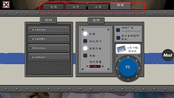 2、在主界面点击“玩”就会跳到难度选择页面,玩家还可以开启字幕、调整游戏亮度;