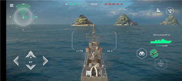 4、按两下前进键即可自动按最大速度前进,将准许移动到敌舰方向,雷达自动缩地敌方。