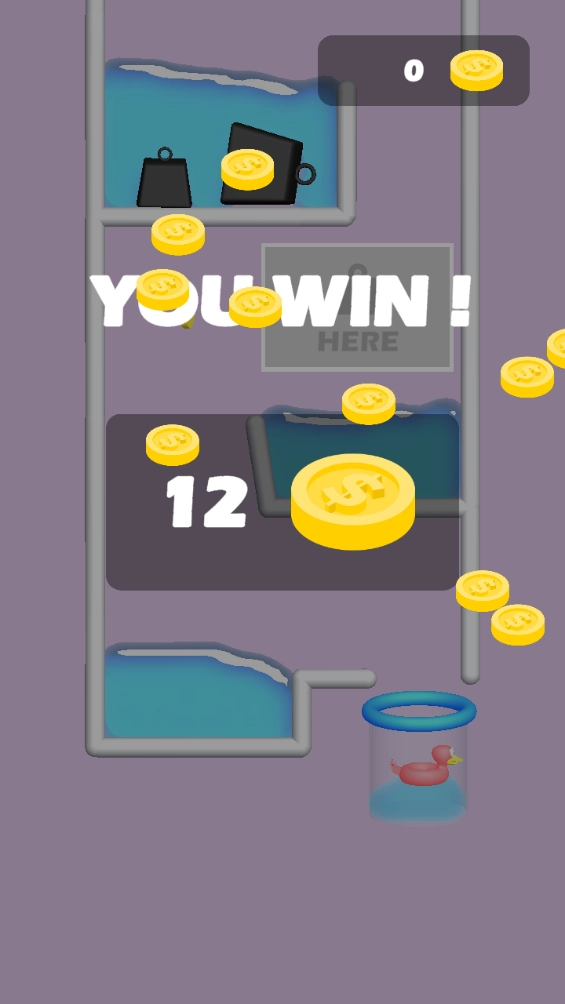 2、游戏里由于水位太低,小鸭被困在这里,大家只好让小鸭出水。