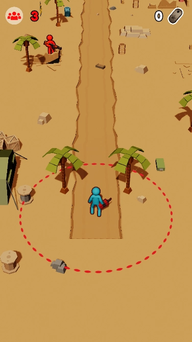 1、控制炸药包狂人的移动。注意红圈是你的投掷范围,避开敌人的子弹,靠近敌人。