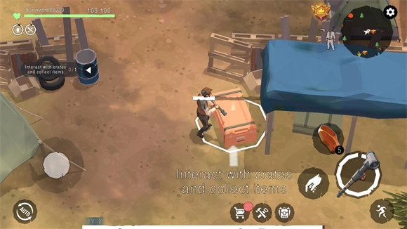 5、在地图上与箱子互动,可以搜集到各种物资,点击下方的锤子按钮消耗资源制作新物品。