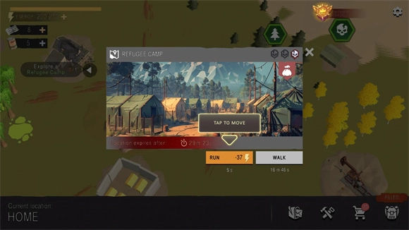 4、前往周围的绿色区域,进入大地图,选择一个地点开始探索。