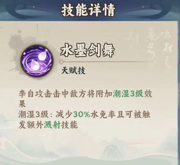 “潮湿”能减少怪物的水免率,攻击身上带有“潮湿”的怪物时能触发“溅射”技能,造成范围水伤。