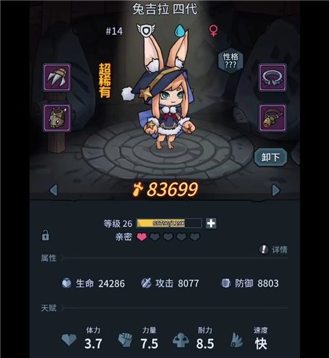 兔吉拉在玩家进入战斗之后,可以给玩家施加一层护盾,九代时的护盾值是1600加上玩家生命值的8%,可以说是很厚的盾了,是玩家刷图必备的。