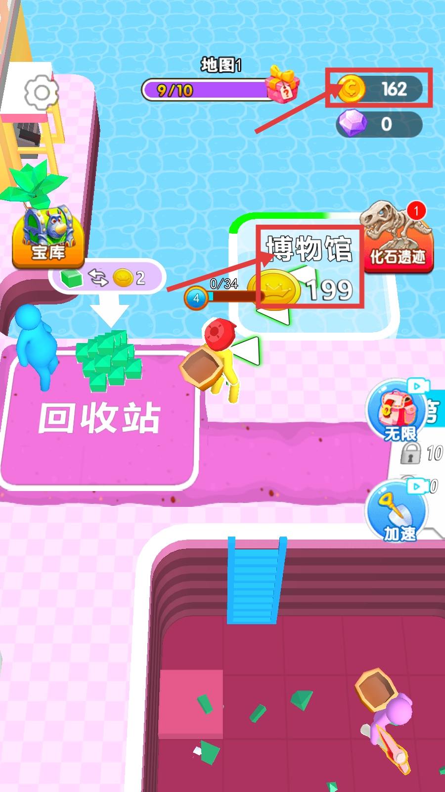 4、积累金币至【199】后解锁博物馆,解锁后可进一步提升资源获取效率,同时金币积累至【162】,为后续升级和探索提供支持。