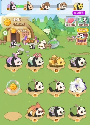 游戏里有不同等级的熊猫,它们的外观都十分可爱,玩家得快速合成解锁,并且努力获取更多奖励。