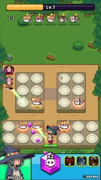 4、合理布局搭配不同的寿司,解锁不同的关卡开始战斗